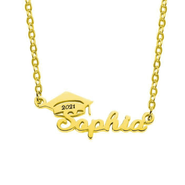 Celebrate your achievement with this elegant custom necklace, featuring your name and a graduation cap charm. Crafted from high-quality, tarnish-free, and water-proof material — it’s the perfect keepsake for your milestone moment.